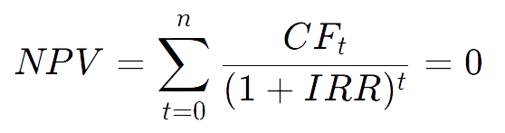 The Internal Rate of Return (IRR) represents the discount rate that sets the Net Present Value (NPV) of all investment cash flows equal to zero.